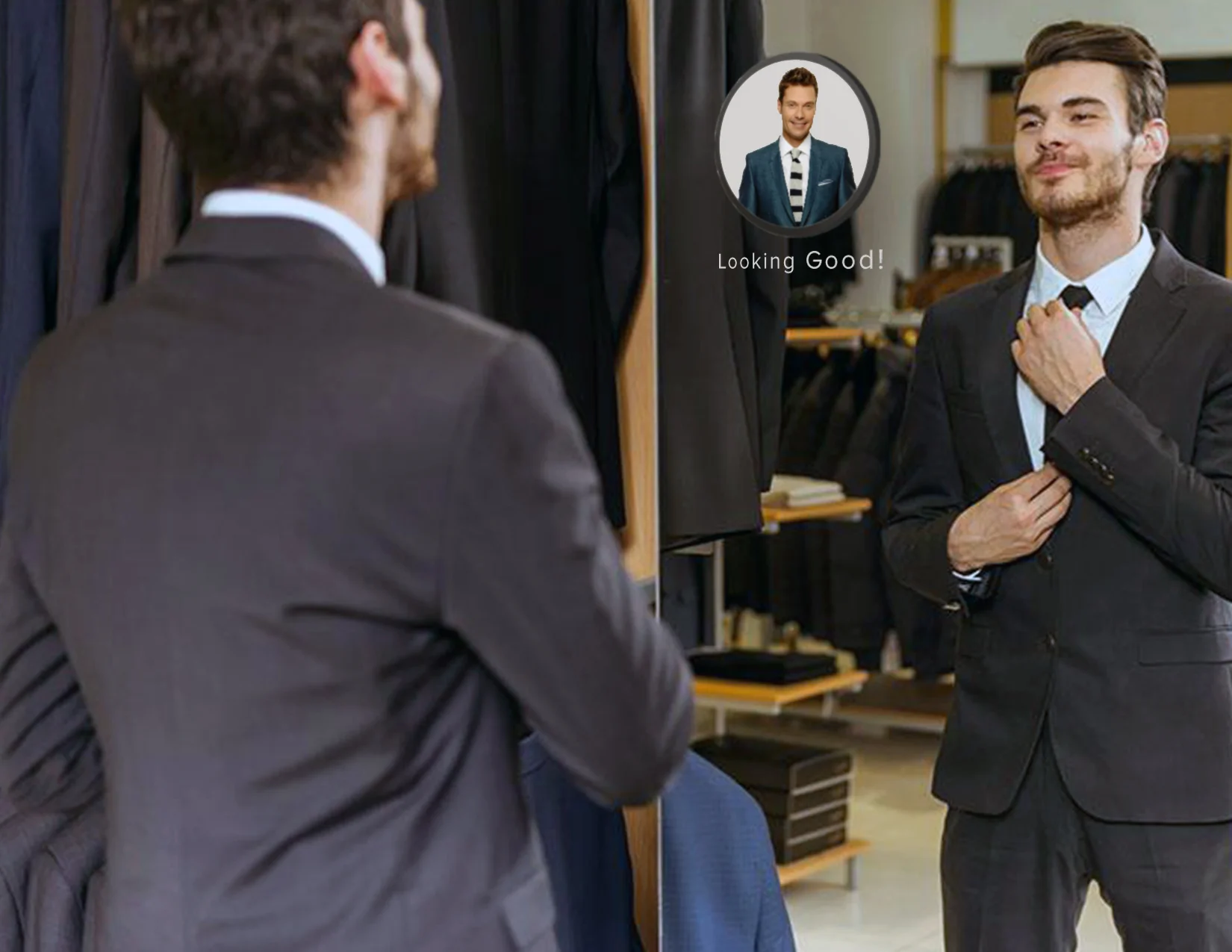 RFID reader on dressing room mirrors that respond whenever someone puts on a Distinction jacket.