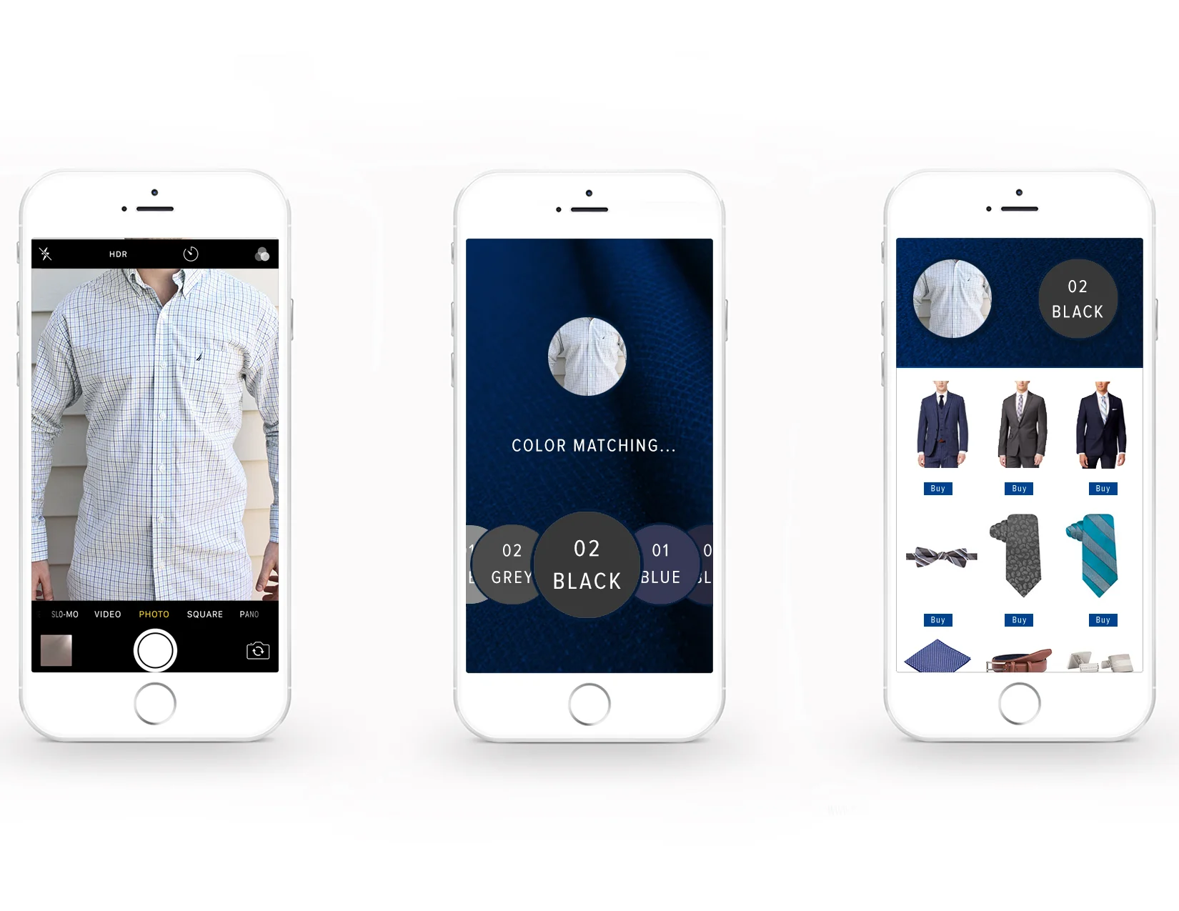 With the Color Match Application, take a picture of your favorite shirt or piece of clothing and find Distinction Clothing and Apparel that match. Matching clothes can then be purchased and sent to your home.