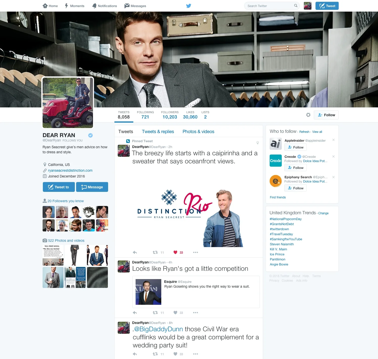 Ask the "Dear Ryan" Twitter and Ryan Seacrest will answer your questions.
